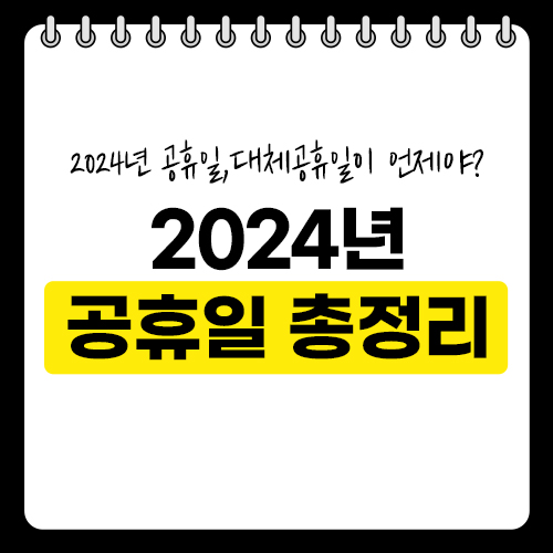 많은 직장인분들이 제일 중요하게 생각하는 공휴일! 올해는 공휴일은 언제이며, 대체공휴일은 어떻게 지정되어있는지 궁금하실 겁니다. 오늘 2024년 갑진년 공휴일과 대체공휴일을 깔끔하게 정리하였으니 참고하셔서 휴가 계획 미리미리 세우세요,